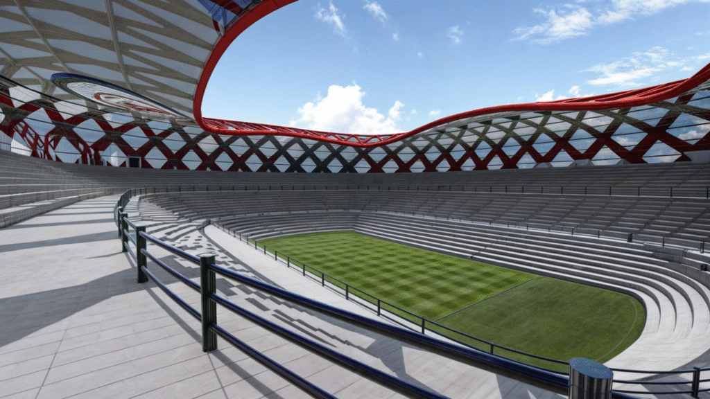 This project is a masterpiece of modern architecture, designed with organic and parametric forms. The curved, shell-shaped roof design inspires a sense of lightness and harmony with nature, showcasing a seamless interaction between the architecture and its surroundings.
