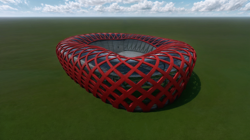 This architectural form was modeled in Rhino, rendered in Lumion, and enhanced with AI for greater realism and detail, showcasing the power of advanced digital design and visualization.